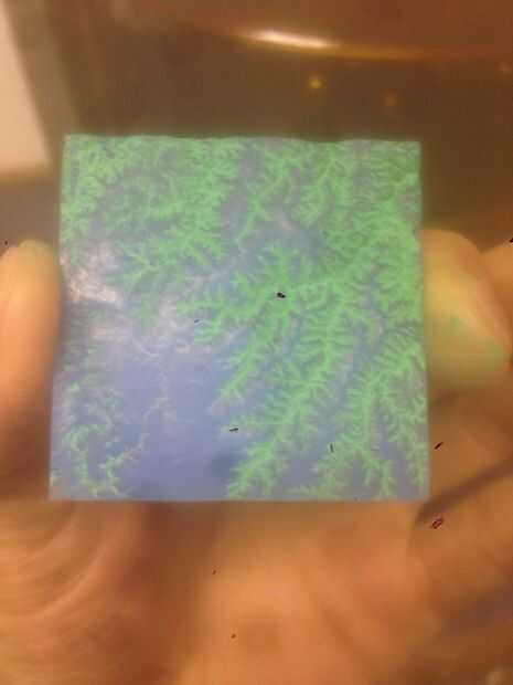 Me puso de relieve los valles verdes mediante el uso de un color verde en la parte superior luego usa una toalla de papel para eliminar el exceso de tinta. Luego apliqué un color azul a la superficie posterior para obtener el acabado de dos tonos.