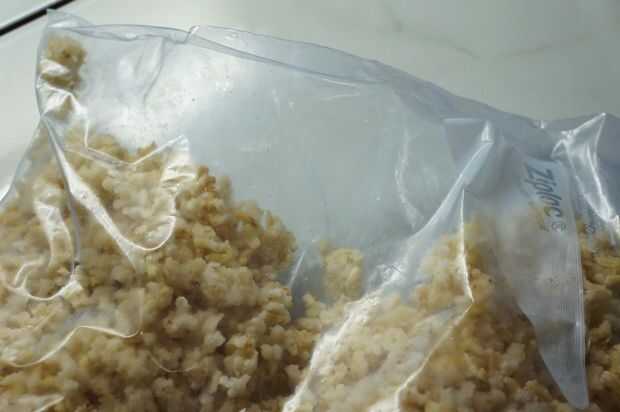 Cuando congelar el arroz, me Coloque en una bandeja para hornear galletas sin apretar y meter en el congelador hasta que el arroz está congelado ligeramente, entonces retirar las galletas del congelador y utilice una espátula para aflojar los granos. Si los granos están agrupados juntos, I rompen los racimos con mis dedos, etiquetar las bolsas con la fecha, coloque el arroz en bolsas y congelarlas hasta que se necesite. No hago más que lo que voy a utilizar en 4-6 semanas. Tengo un congelador pequeño y no quieren alimentos pre-hechos para quemadura de congelador porque están enterrados debajo de otros artículos.