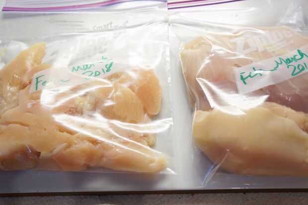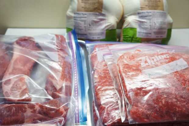 Paquete de chuletas de cerdo, pollo, ternera y otras carnes adecuados en los bolsos libremente y coloque en una bandeja para hornear galletas acostado. Les congelo hasta que algo se congelan. Luego retire la carne del congelador y separe las piezas separadas si se unen. Entonces apile las carnes un poco congeladas en el congelador. Cuando tenga una sola porción, no necesito descongelar todo el paquete.