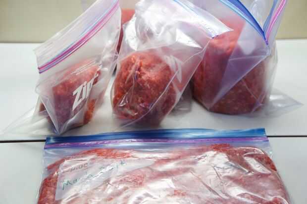 Para hamburguesas, colocar porciones más pequeñas en pequeñas bolsas de congelador para raciones individuales reducir el tiempo necesario para descongelarlos. Congelar bolsas más grandes de loafs de la carne y otras recetas que necesitan más carne.