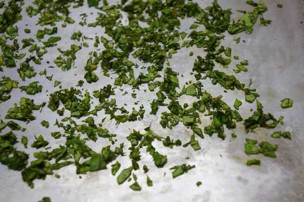 Para congelar las hierbas frescas, picar y colocarlos en una bandeja para hornear galletas y ponerlas en el congelador hasta que estén congelados, no tarda mucho. Entonces tomé fuera del congelador y usa una espátula para romper así las piezas fueron separadas. Luego coloque en bolsas de congelación y en el congelador que se fueron.