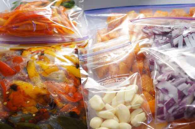 Utilizo un montón de pimientos, ajo, cebolla, pimientos, champiñones, limones, limones y papayas, preparación en mis días buenos y almacenarlos en el refrigerador en bolsas para esa semana. Usar un pelador de patatas para la papaya y les cubo.