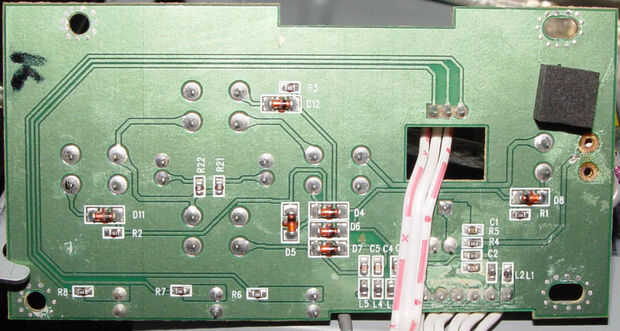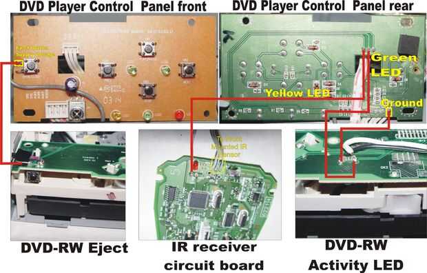 4. Conecte la actividad positiva de que LED lleva desde el receptor IR y unidad de DVD apropiado cables de fuente de LED o contactos del circuito delantero.