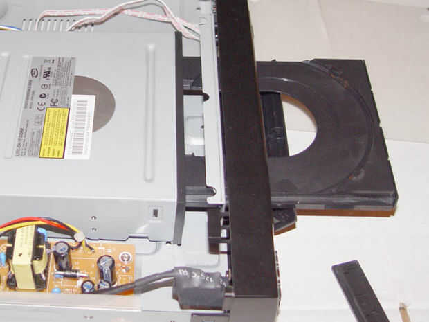 Una consideración más es la cubierta delantera de la bandeja de DVD. La unidad de Digix que estoy utilizando tiene una puerta de resorte para cubrir la bandeja del dvd cuando está cerrado. Si usted está pensando en el reproductor de DVD tiene una tapa frontal que se fija en el extremo de la bandeja de la unidad y quede alineada con el frente del jugador, entonces usted tendrá que montar el disco interno mucho más exacto y encontrar una manera de montar la cubierta en el extremo de la bandeja de disco de DVD IDE interna - probablemente con un extensor de algún tipo.