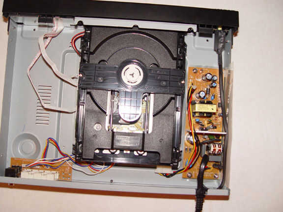 1. quitar los 7 tornillos que sujetan la tapa del reproductor DVD a su chasis. Levante la cubierta de la parte posterior y hacia atrás para eliminar.