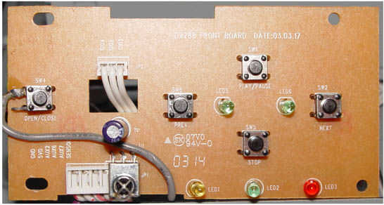 Exponer y examinar el panel de control frontal de reproductor de DVD circuito.