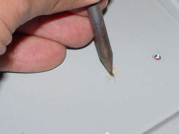 4. Utilice una herramienta de punzón y un martillo para hacer muescas donde se ubicarán los agujeros. Taladre los agujeros.
