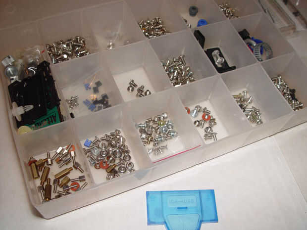 2. fabricar sus montajes. Encontré que algunos separadores de Motherboard, Tarjeta madre, que tenía en mi cubo de piezas de diversos estaban a la altura correcta, por tanto, no necesitaba ningún encargo montajes fabricados. (Si yo fuera tan afortunado entonces probablemente sólo habría encontrado un trozo plástico o de madera del grosor adecuado, cortar pequeños cuadrados y aburrido un agujero a través del centro. Entonces asegurar la unidad con tornillos largos a través de la parte inferior de la caja.)