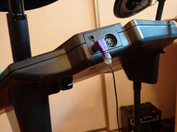 Tiene 3 pads de batería, 2 platillos y un pedal. En el panel posterior, hay incluso 2 conectores de audio de 3,5 mm - uno de los cuales conecta el pedal del bajo y el otro que nos podemos ahorrar para cualquier modificación adicional a la batería.
