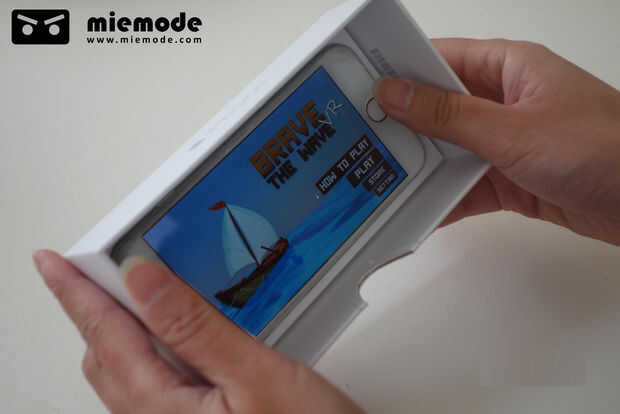 Coloque el teléfono y cargar la aplicación VR. Usted puede comprobar nuestra aplicación gratis VR, valiente el VR de la onda, en Apple App Store y Google Play Store.