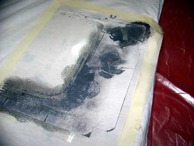 Normalmente utilizo un cepillo Stecil para esta camisa particular, utilicé mi esponja confianza, encontrar esponjas para absorber mucha de la pintura, pero dan una buena capa uniforme.