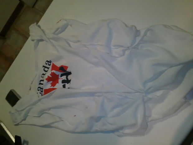 sabía que era demasiado bueno para ser verdad cuando compré esta camiseta en la tienda de dólar.  Reducido para ser demasiado corto la primera vez que me lavé.  Oh, pero me encantó el color, se ven realmente bien en este color.  Así que puse hasta el
