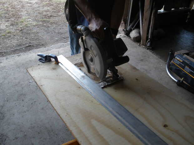 Sugiero una sierra circular con guía, aunque puede ser cortado con una sierra de mesa