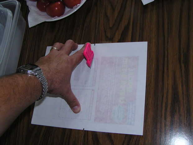 Estoy demostrando esto en un trozo de papel de desecho ya no muestra tanta negro solo. Las marcas en el papel fueron hechas con un marcador en vez de un lápiz por la misma razón.