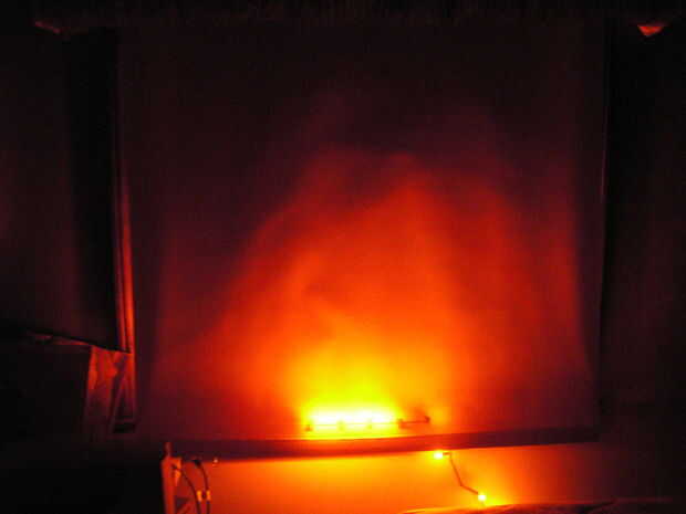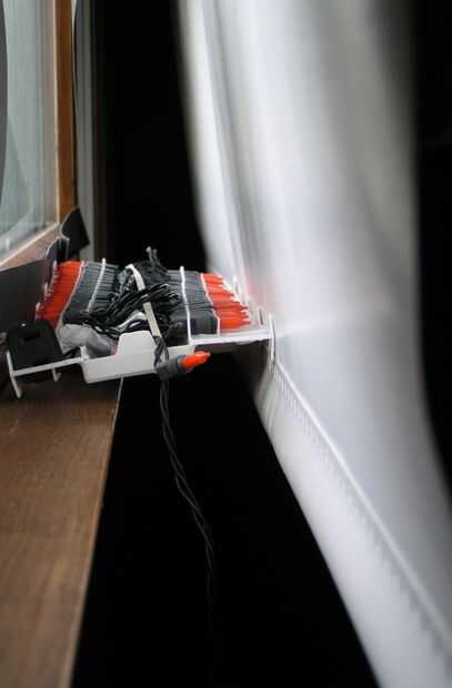 Tomar un conjunto de mini-luces naranja y deshacer lo suficiente de la cadena (enchufe macho final) para llegar a una toma de corriente cercana.