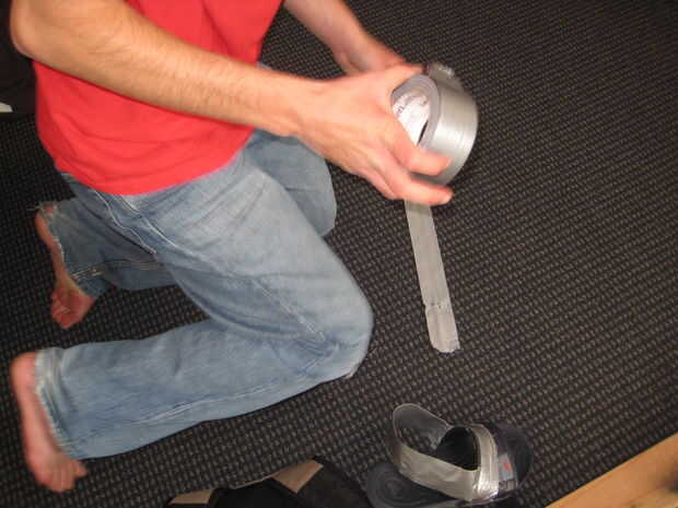 Reparaciones de emergencia para una sandalia rota (Flip-flop)