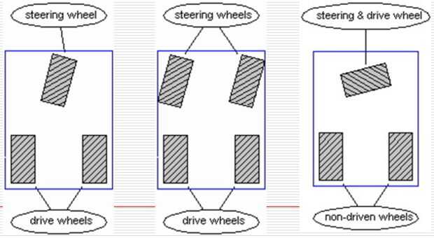 Desventajas del tipo de coche conduce : el mecanismo de giro debe ser controlado con precisión. Una inexactitud leve puede causar errores de odometría grandes el sistema es no-holonómico por lo tanto planificación de ruta de acceso es extremadamente difícil como inexacta no hay ninguna directos actuadores direccionales