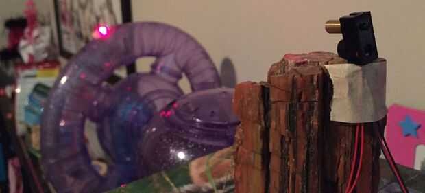 El sistema de medición es muy simple. El sensor de rayo láser rotura irá dirigido a un blanco pequeño en la rueda que sólo reflejará el haz de una vez por la rotación completa de la rueda. El Pi se detecta cada vez las vueltas de la rueda una vuelta completa y calcular la distancia recorrida y la velocidad (la distancia recorrida es simplemente la circunferencia de la rueda). Las mediciones resultantes serán capturadas y transmitidas a una visualización de datos que puedes mirar cuando te despiertes cada mañana (porque el hámster es probablemente subirse su entrenamiento mientras duermes por la noche).