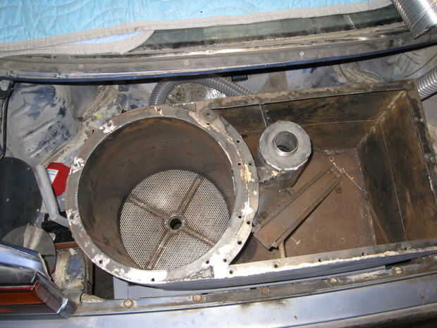 -Conectamos el eje de la rejilla a un motor de limpiaparabrisas de parabrisas montado en la parte inferior de la caja, por lo que se puede girar automáticamente. Nosotros lo llamamos el JIGGLERATOR. Aunque nos encanta su nombre, pruebas del vehículo mostró que al menos en la ciudad que conduce, el coche golpes alrededor suficiente por sí mismo para desatascar cualquier combustible atascos.