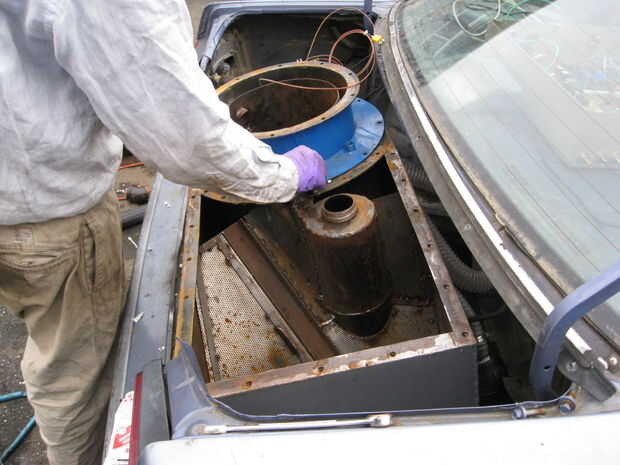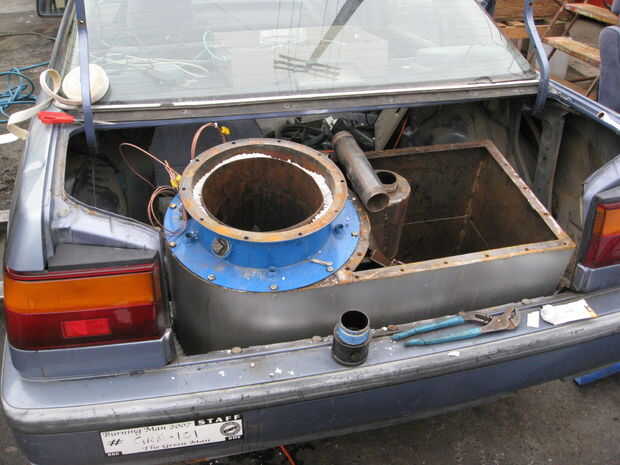 -Tornillo de tolva sobre el reactor. Hicimos una tolva más delgada que el estándar así que se ajusta detrás de la ventana trasera.