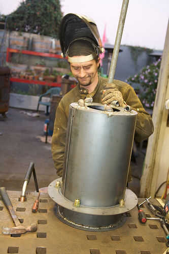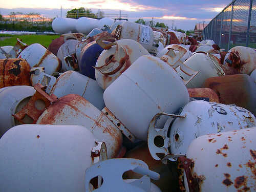 Para la ruta obtainium, necesita chatarra tanques de diámetros de 10", 12" y 14,75". 10" es típica para tanques de transferencia de aire de mano y algunos tanques de pony de carro. 12" es típica para tanques de propano de 5 y 10 gal. 14,75" es típico de un tanque de propano de 100 libras / 25gal. (ADVERTENCIA: hay una variación dimensional cantidad sorprendente "tanques estandarizados" entre fabricantes diferentes tanque. Esto puede complicar el ajuste de bridas y placas de extremo para los tanques de desecho).
