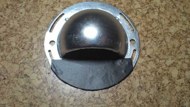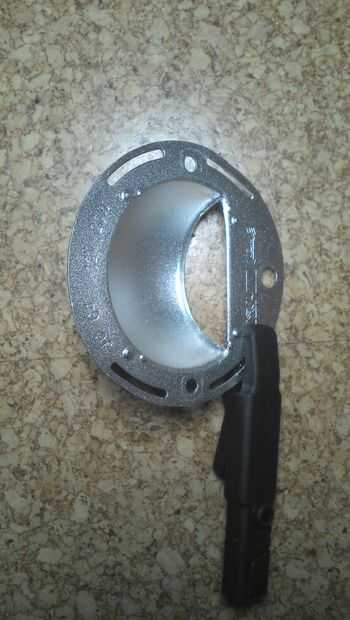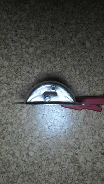 Corta la zona marcada de rojo. Esto puede hacerse fácilmente con pequeñas tijeras y una lima de metal, ya que el material es muy suave. Por supuesto también se puede utilizar una herramienta giratoria. Esto es donde el módulo Led va a ir, así medir las dimensiones del agujero. También no olvide pegar un trozo de cinta aislante debajo del orificio para evitar cualquier cortocircuito.
