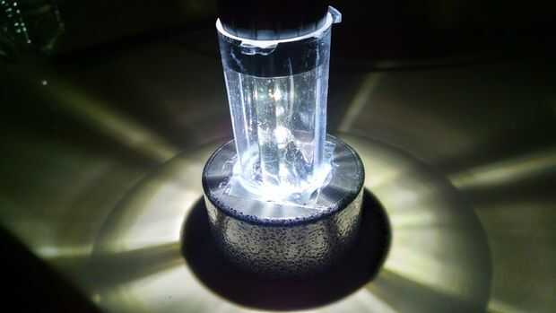 Coloque la luz hacia abajo para que se sienta en la base de metal y ver cómo funciona!