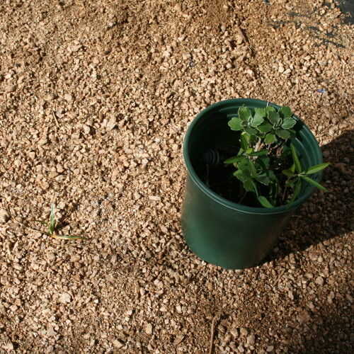 Luego colocar las plantas en las camas y les dejan en sus ollas por unas horas asegurar que nos ha gustado mucho donde estaban. Una vez que la planta estaba en el mejor lugar, nos mueve el pajote de la manera, cortar una X en la tela del paisaje con un par de tijeras y excavar hasta la profundidad apropiada, poner el suelo en una bañera o el wheelbarrel. Cuando la planta estaba en, la X sería suave como cerca de la planta como sea posible, y el mantillo se reunió alrededor de él.