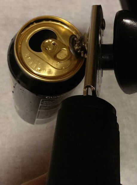 • Coloque el abrelatas con el disco bajando desde arriba y el engranaje de rotación en el borde externo del labio superior