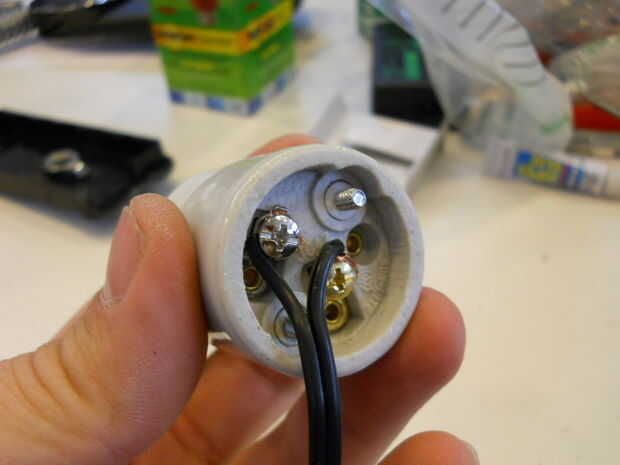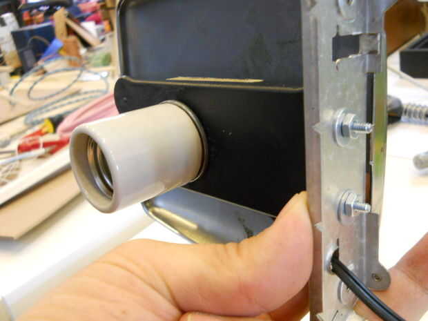 Instalar la parte eléctrica: enchufe, interruptor, cable. El cable tiene dos cables: uno debe conectarse a la toma de corriente. El otro cable va a uno de los cables del interruptor. El otro cable del interruptor va a la toma.