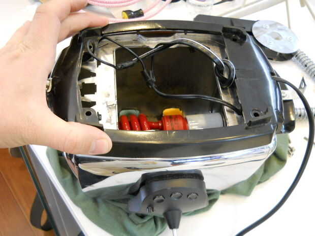 Fije la parte inferior de la tostadora a la parte metálica. Inserte la bombilla.