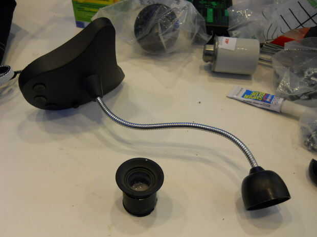 Basura (usa un collar de ajuste para el nitrógeno líquido dewar que he encontrado en el laboratorio, un ventilador dañado escualizable, una lente de una cámara y un cochecito dañado que he encontrado tirado en la calle)
