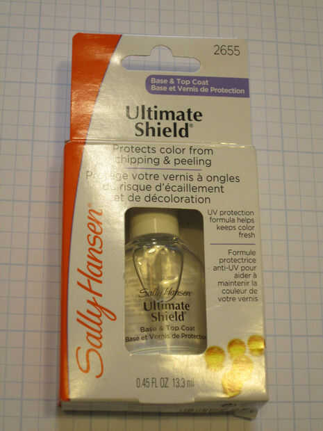 - "Sally Hansen último escudo Base y capa superior". Este fue el esmalte de uñas sólo claro que pude encontrar que prometió protección UV en el envase.