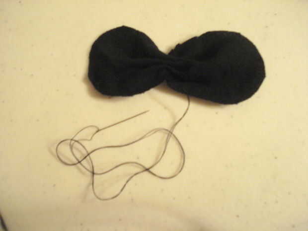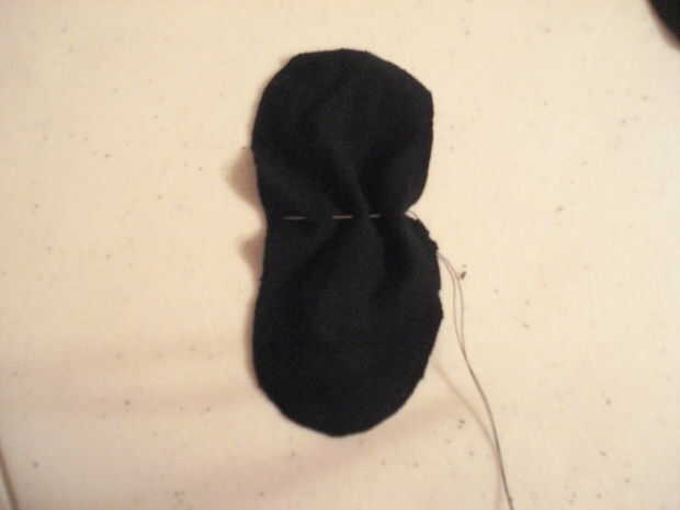 Un óvalo en un momento, hacer una puntada corriente a través del centro. Su puntada corriente debe ser muy floja con solo un nudo en el extremo, para que al tirar del hilo, se puede hacer el material manojo o "reunir".
