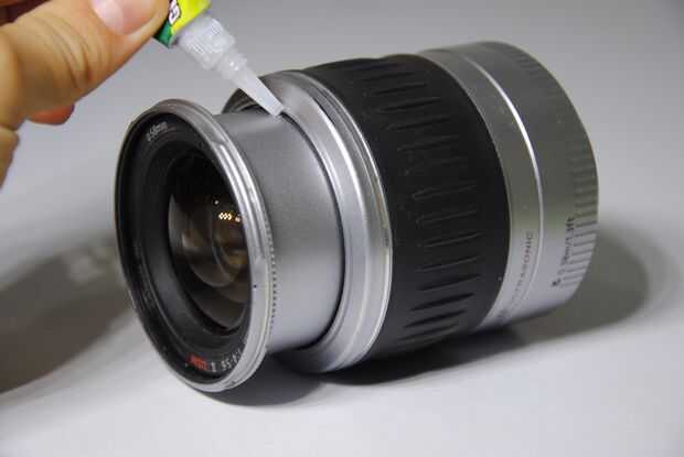 Totalmente extiende la lente (zoom máximo) y encolar con Super pegamento. Deje caer unas pocas gotas a través de la grieta, como te muestro en la imagen.