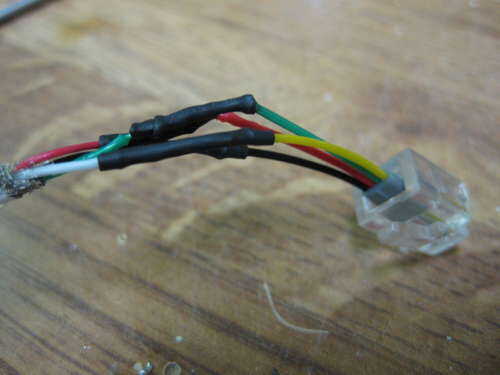 * Ahora tomar alguna tubería del encogimiento del pequeño y colóquelo sobre uno de los cables de teléfono pequeño, tuerza USB correspondiente teléfono cables y soldarlos juntos.