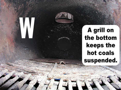 Poner una parrilla sobre el tubo del bosquejo. Esto guardar el carbón de la quema por la parte inferior de la estufa y permitir que el aire a entrar por el tubo del bosquejo. Probablemente deberás sustituir la parrilla cada año. Ver foto de W .