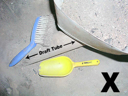 La estufa creará alrededor de 1 a 2 libras de ceniza cada día. Es mejor quitar la ceniza después de cada día porque una acumulación reducirá la producción de calor. Foto X muestra las herramientas que utilizo para quitar ceniza. Utilizar un imán para quitar clavos y tornillos de la ceniza porque pongo las cenizas sobre el césped en la primavera.