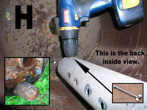 Usé el agujero del tubo de la estufa de 5 pulgadas como un acceso para el taladro. Esto fue cortado en la foto C . H foto ilustra todo esto.