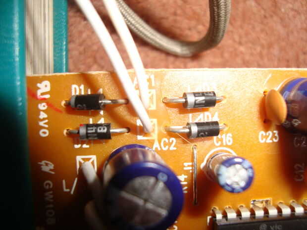 Luckley el circuito que estaba en mi ponente tenía cuatro diodos arreglado como un puente rectifyer. Un propósito de rectifyers de puente es convertir la AC a la bruja de DC fuente de nuestras baterías. Esto quiere decir que lo que parece nuestro tablero dibuja AC el tablero de su auto realmente convierte en DC antes de que llegue algo así podemos conectar nuestro directley de baterías a la entrada.