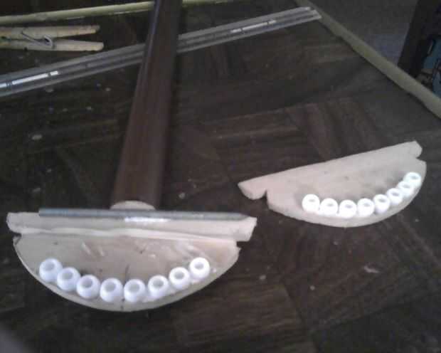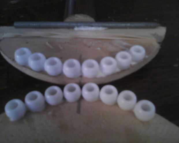 Entonces construir la palanca de control. ... Mina es sencilla y sólo funciona la boca. ... ¿Observe la uña? NO hizo en la versión final. Puedes ver su desaparecido en última foto aquí al lado. Con el grano 'dientes' añadidos, lo no necesito como una bisagra. Tengo que pulir los granos espaldos para obtener el frente más al tacto. ... Tenga en cuenta cómo curvado del borde posterior de la mandíbula inferior como una bisagra. QUE mantiene la mandíbula inferior de arrastramiento fuera de lugar debido a la fricción más adelante. ... Finalmente hice un ataque seco de la palanca de control (se ' pega' el extremo final de la rana, como veremos más adelante) y que tenía que abrir un poco la costura trasera. ... Nota cómo construí la palanca de control. La quijada fija es el superior. Tuve que cortar una sección del palo, la mitad y una mitad pulgada por debajo de la parte delantera de la mandíbula superior, que pega bien al palo. El movimiento de la mandíbula es el menor, como tu propia boca. Tres bandas de goma #30 medio sosténgalos juntos; y pongo la ranura en la parte posterior de las mordazas para las bandas de goma controlar su tensión y mantenerlos en p [encaje y ocultos en la parte posterior de la boca.... También tenga en cuenta el uso y la colocación de los tornillos de ojo, uno en la mandíbula inferior y el otro en el palillo sí mismo. La cadena funciona hacia fuera el extremo posterior de la rana y los lazos, justo donde sale, en un anillo - en tanto mantenga el palo y trabajar la mandíbula tirando hacia atrás en la cadena.
