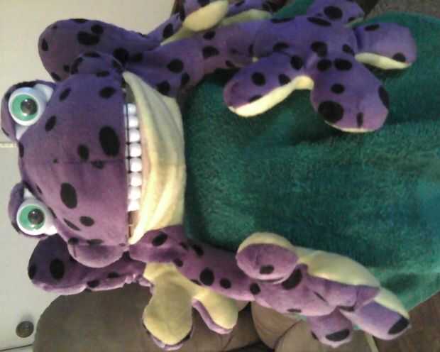 Aquí es los tiros casi finalizados. ... En mis pruebas con personas reales, me dijeron que tenía un conjunto imponente de los dientes. No les gustaba tanto. Asi que me hice el labio superior abrigo sobre ellos, para ocultar todos los mejores. Que trabajó y obtuvo buenas críticas. ... Tuve un poco de problemas con el material de la garganta amarillo arrastrándose hacia atrás debido a la espuma. Probar un corte de mylar para detener el problema, pero no me gustó el efecto. Así que llevó a cabo y sólo pega el labio a la quijada realmente bien! Que trabajado... y supe que el Dr. Owl fue todo un éxito después de que el nieto en mal estado con él y le dio un beso en la boca! .... Lo siento no hay ninguna foto del mecanismo de anillo, pero su muy simple, y usted puede ver cómo funciona. ... Configurar el Dr. Owl, el sabio, en su tuffet, agarra la palanca de control y coger el anillo de mi dedo índice, tire hacia atrás de él y como su boca se abre. .... Una vez más, él es nieto aprobado!!!!!!