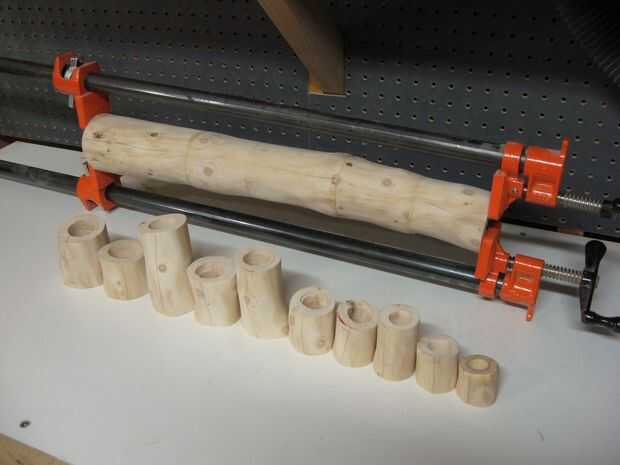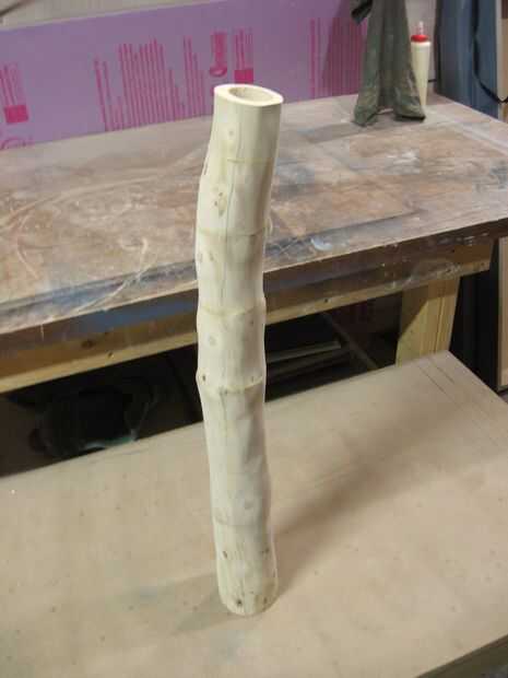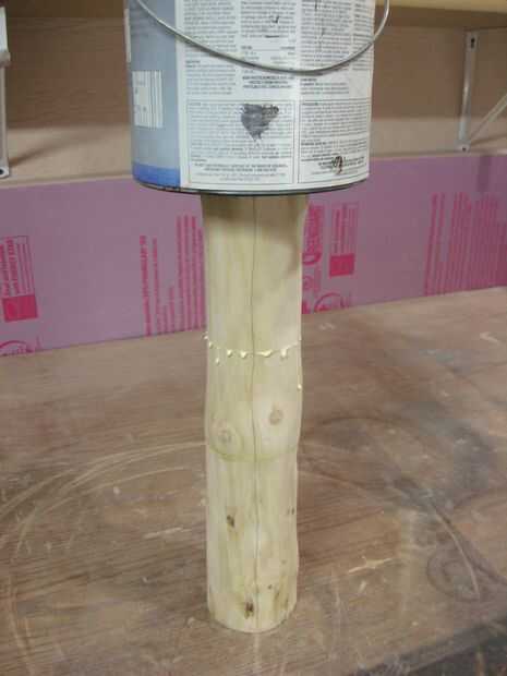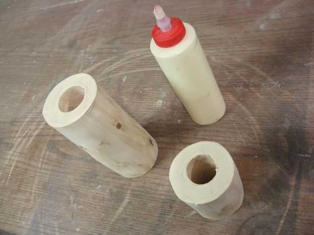 Al pegar, es importante poner una capa uniforme de pegamento en ambas superficies a unir. Inmediatamente el pegamento agarra la madera y comienza penetre en los poros pequeños, preparando para una buena adherencia. Además, si dejas reposar un par de minutos, a las dos piezas el pegamento comenzará a obtener pegajoso. Cuando las dos piezas se unen entre sí, las dos partes de pegamento pegajoso agarrar a uno a y crear un vínculo muy sólido y rápido. Se trata de una útil técnica de sujeción no es factible, que era el caso con la mitad superior del tronco.