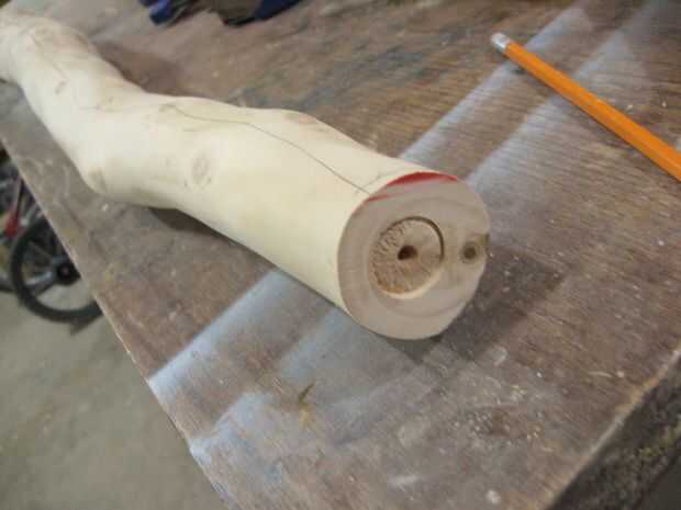 Tomé un pedazo de pino y había conectado a un árbol de Navidad, utilizando un escoplo, formón de huso y un cincel para sesgar.Luego lija 80, 12, 320, 600 grano entonces la acabada con aceite de teca. luego agregó un ojo de tornillo por lo que puede s