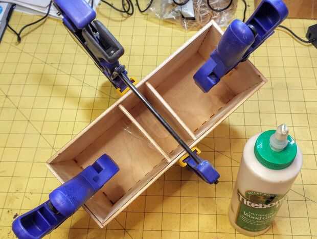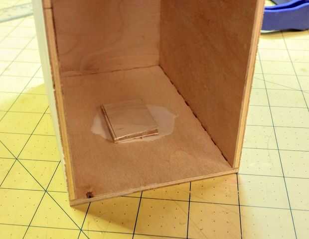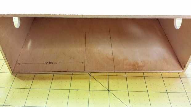 Tomar los pedazos de desecho pequeñas y péguelas sobre los agujeros en los lados para sellar la caja. Mide 9,75 centímetros de cada uno dentro de borde y haga una marca. Utilizar la plaza para extender la línea. Poner pegamento en los bordes del interior paredes. Inserte las paredes en ángulo y giro en su posición. Las paredes van en la parte exterior de las líneas de lápiz para que tengas un completo cm 9,75 para cada cámara altavoz. Usted debe dejarse con sobre un amplio espacio de 3,5 cm para placas de circuito impreso. Sujetar todo junto y dejar que se seque.