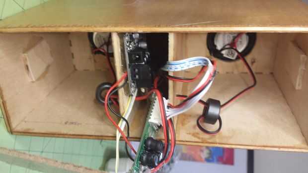 El amplificador se pega en la cubierta posterior y el módulo bluetooth se fija a la pared divisoria con pegamento caliente.