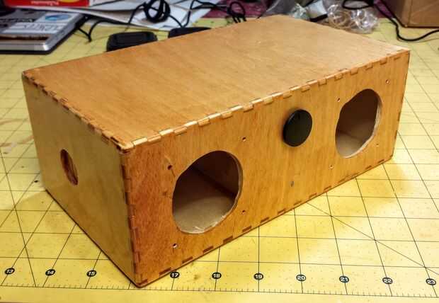 Coloque el interruptor de encendido/apagado/volumen a través del orificio y fije con la tuerca incluida. Para mí, que a la izquierda la perilla que se pega un poco demasiado lejos nuestro. Así cortar un trozo de MDF como espaciador y había colocado entre el interruptor y el caso entonces utiliza pegamento caliente para montar el interruptor. El LED fue simplemente sujeta con pegamento caliente.