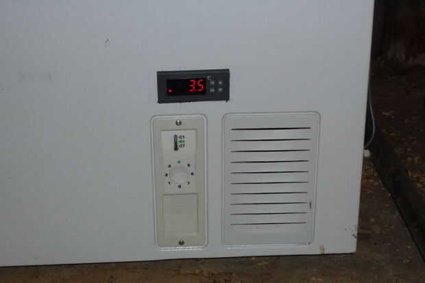 Ejecutar la sonda hasta la parte posterior del congelador y serpiente debajo de la tapa. Conducto de cinta adhesiva en el congelador es una buena manera de mantener los cables logramos. Ajuste el regulador a través del agujero y use los clips naranja para sostener contra la pared. Pueden ser un poco difíciles de conseguir en, pero mantener en él. Mi controlador funciona en grados Celsius, temperatura de la nevera es 4 grados. Si el tuyo es en Fahrenheit probablemente desea establecer a 39 más o menos. Este congelador particular fue lo suficientemente alto para kit de barriletes y bombonas del palo, pero voy a instalar un collar madera y grifos como se detalla en instructables otros pronto. Por el momento un