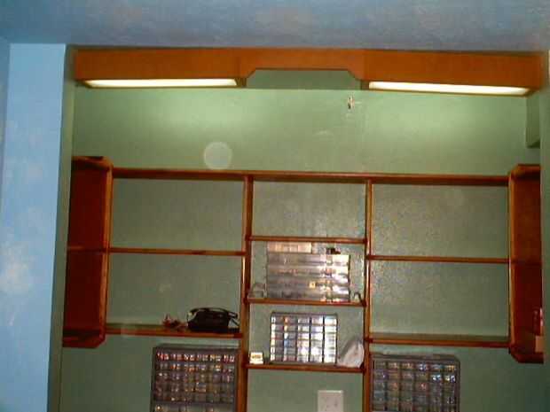 compré una casa nueva y quería convertir a uno de los dormitorios de repuesto en una sala de juegos, pero no quiero perder espacio. Yo acabé convirtiendo el armario en un escritorio largo.Quité las puertas y el marco de la parte superior de la puerta