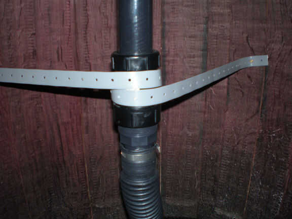 Utilice una extensión para el desagüe del fregadero. Añadir tubos adaptadores para conectar la manguera flexible y el tubo flexible (manguera de la bomba de sumidero) para el drenaje. Utilicé una correa de plástico para evitar que el adaptador de manguera de la extensión.